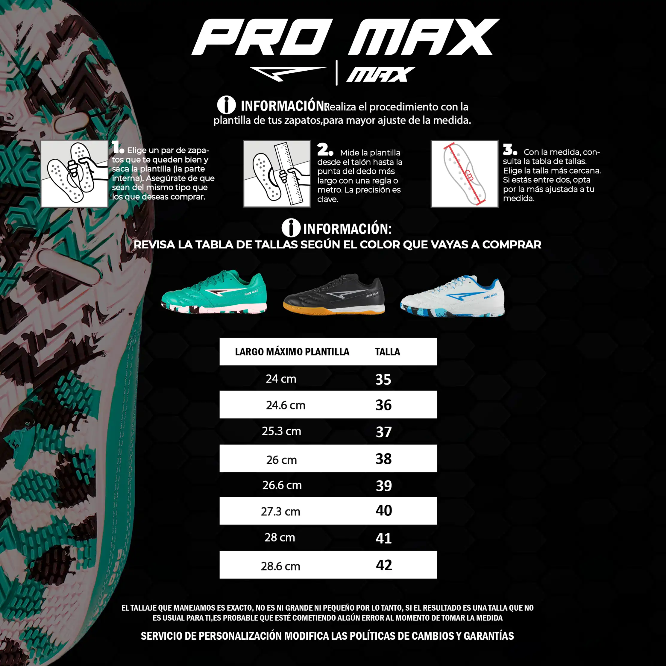 Inspiradas en el guayo PRO MAX, diseñada para ofrecer máximo rendimiento en canchas indoor. Cuenta con suela elaborada con tecnología Hi-TRACRUBBER, el compuesto de goma de más alta calidad del mercado, que mejora el agarre en todo tipo de superficies y prolonga la durabilidad de la suela.